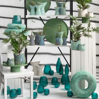 Cooler Fischkopf Kübel aus Keramik auch als Vase nutzbar in türkis und blau leicht schimmernd irisierend..