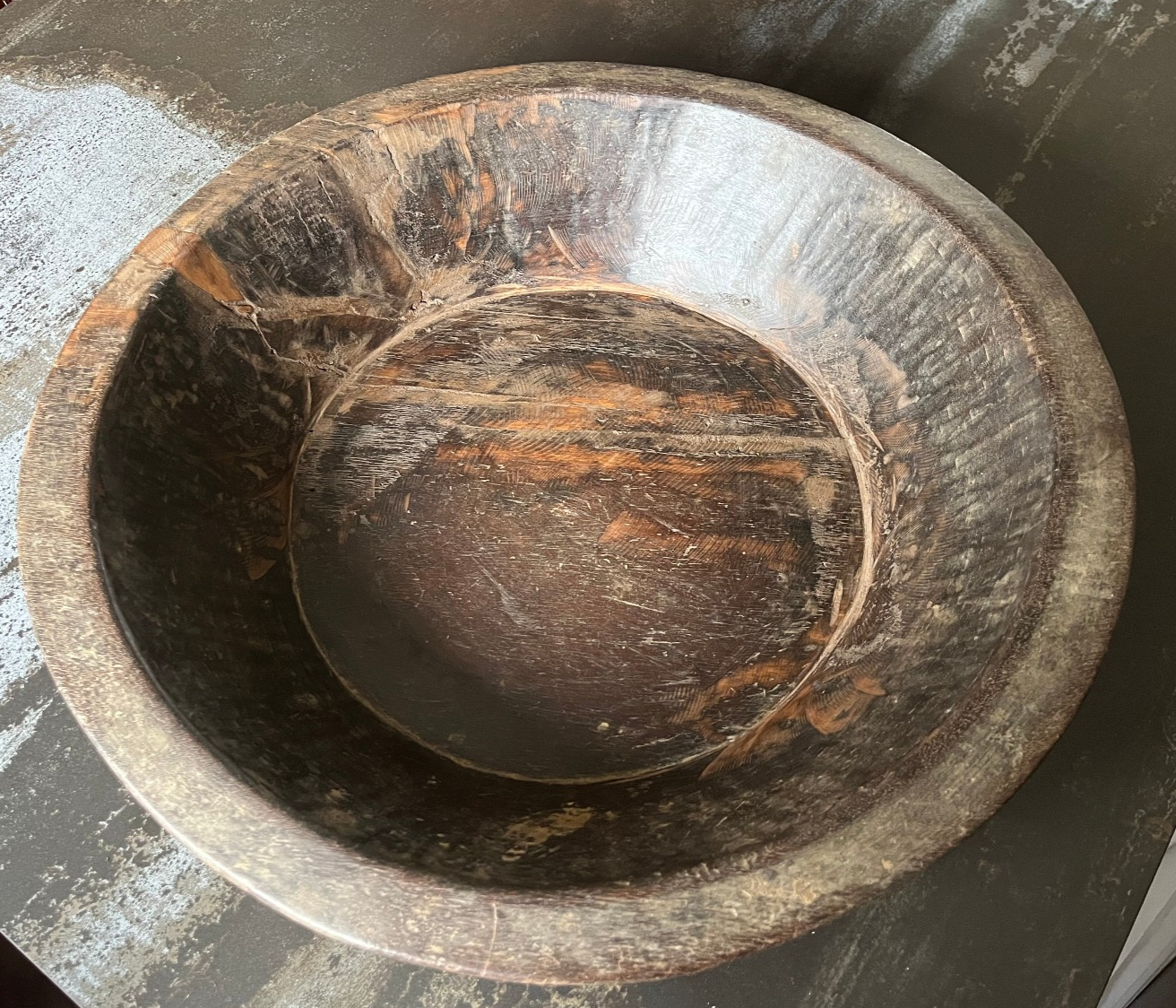 Schale ist ein Unikat und durch das Altholz mit ausgebesserten Rissen