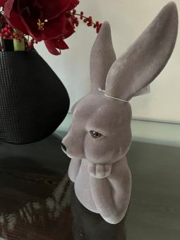 XL Hase Büste denkend grau braun Samtoptik Ostern Osterdeko 30 cm