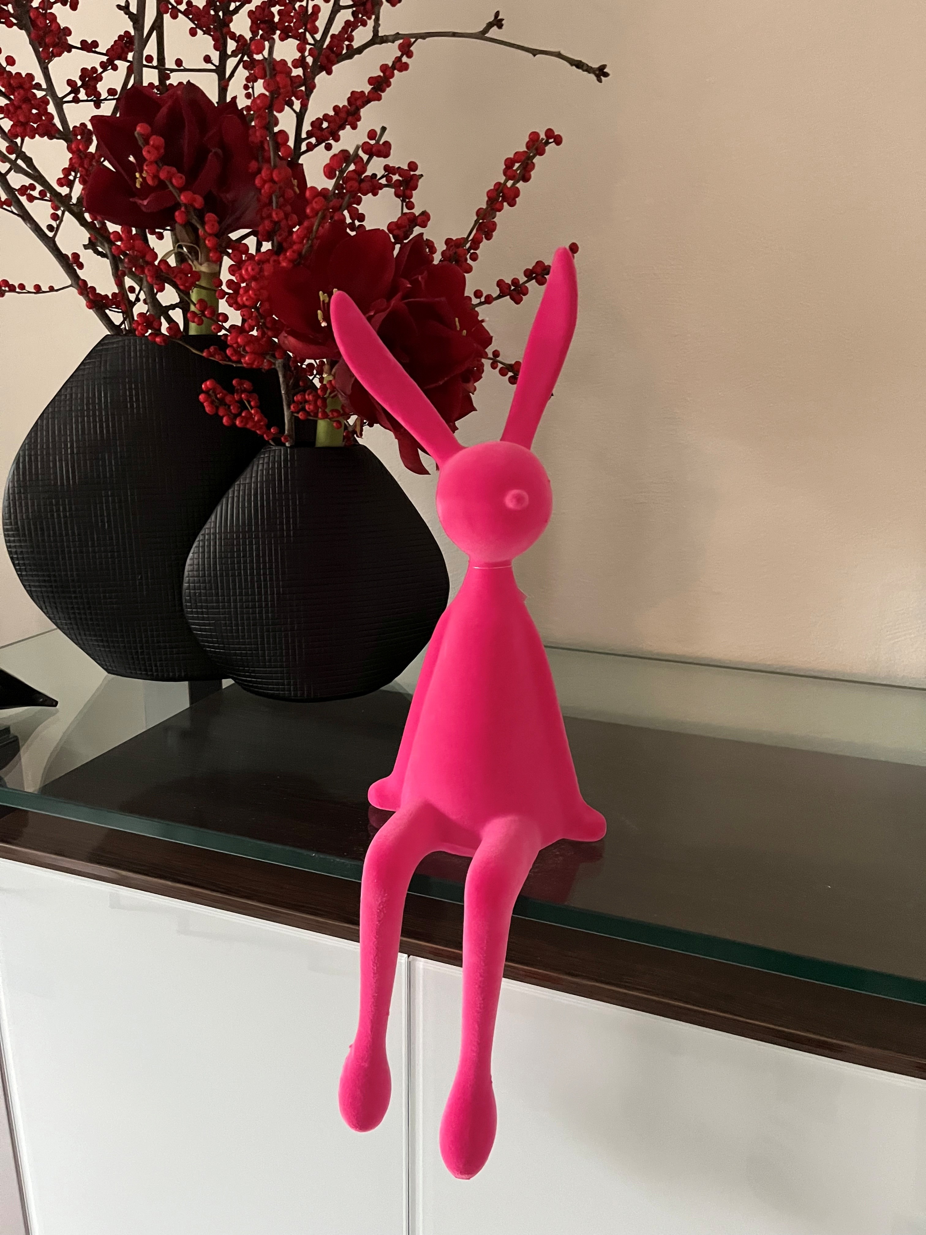 XL Kantenhocker Hase pink Velours Samtoptik 57 cm